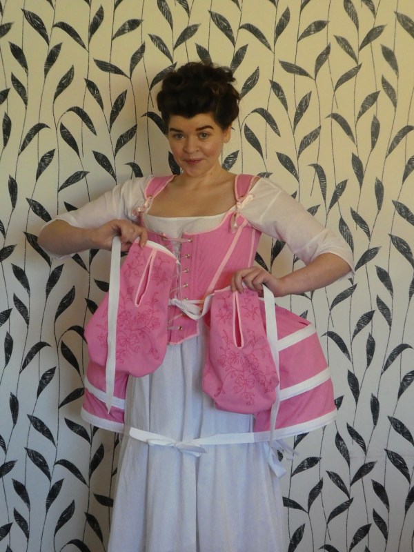 Embroidery: I wanted to try my hand at this skill and embroidered a pair of 18th Century pockets.