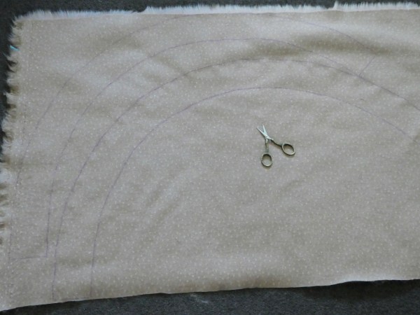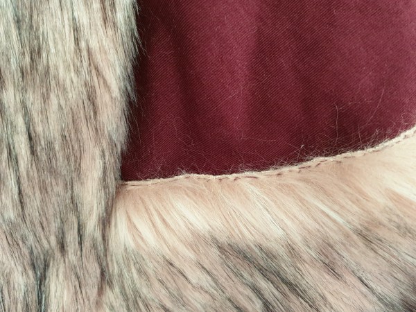 It wasn’t until I was ready to cut out the fur for the bottom of the cape that I realised I had miscalculated and had to cut two pieces and stitch them together so that they would curve all the way around. I also cut a piece for the collar and to border the front edges.