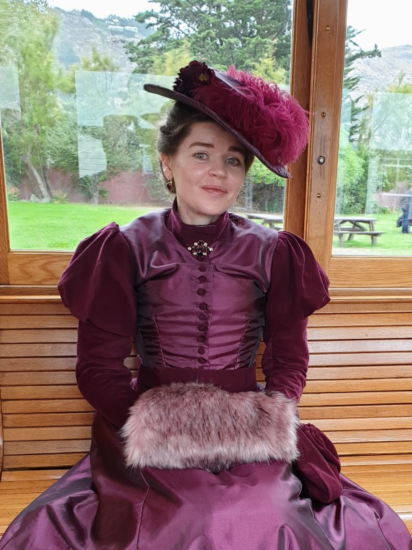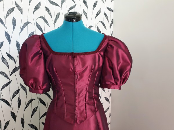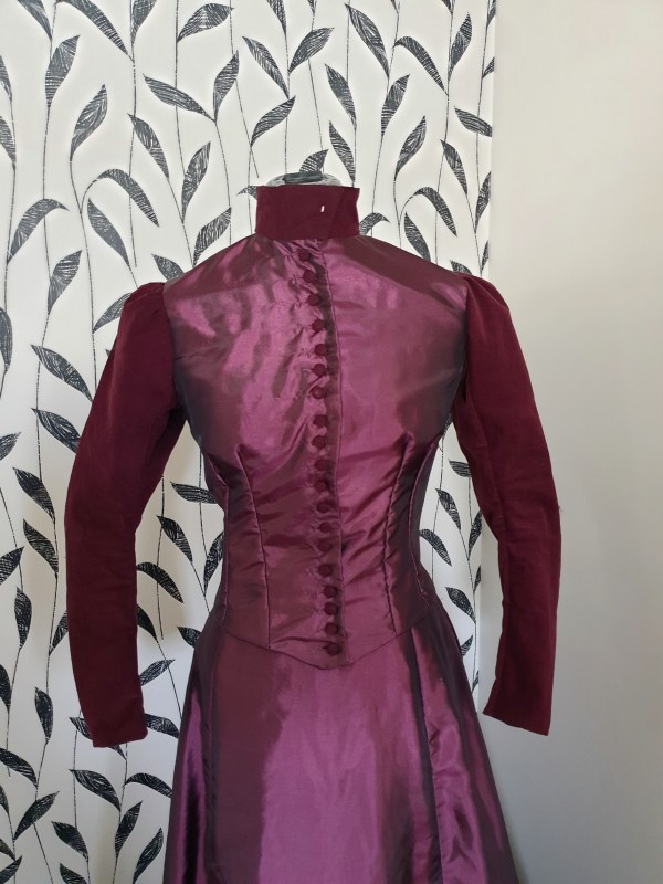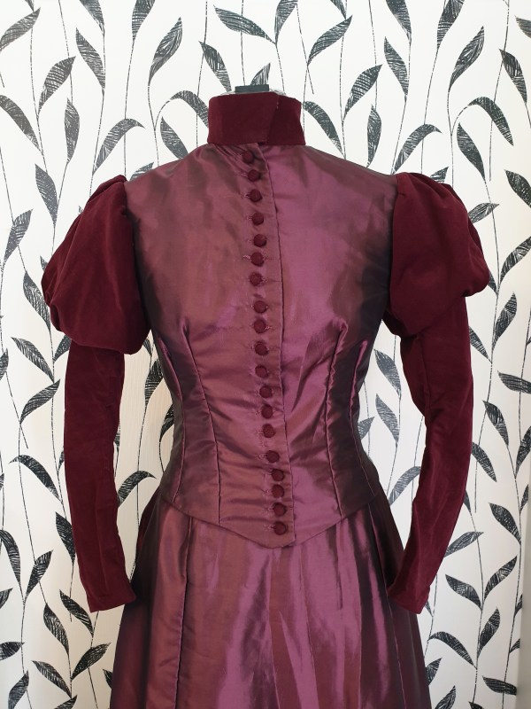 Along with making a new skirt with the plum taffeta leftover from Mum’s 1890s outfit, I wanted to make an evening bodice. The plan originated when the plans for Easter still included a dance so I was in need of something to wear. Even when the dance had to be called off, I wanted to finish the bodice and was able to wear it for one evening.
