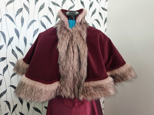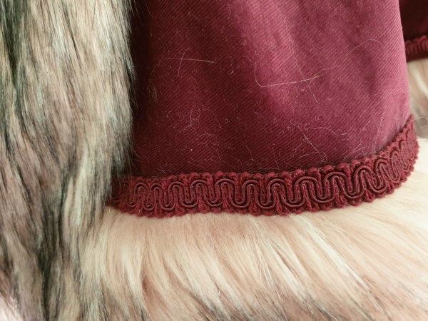 It took a while to do – at least a whole season of Gotham, in fact – but, if you’ve seen my previous cape then you’ll know I am a sucker for punishment when it comes to overly ambitious, time consuming projects. I wasn’t happy with leaving the top of the fur as it was – it didn’t look properly finished. I found some braided trim at Spotlight (the same as I used in the bodice above) and stitched that on top – fortunately that was possible with some wrangling on my sewing machine.