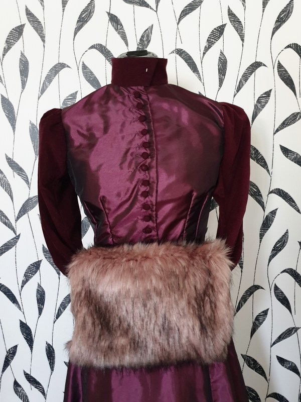 I found a dusty pink faux fur at Spotlight that had black tips. I hesitated when looking at the faux furs available because I didn’t know whether dyed fur was a thing in the 1890s or not but the other, natural colours just didn’t seem to work with the colour of the corduroy as well. In the end, I decided to choose the dusty pink regardless.