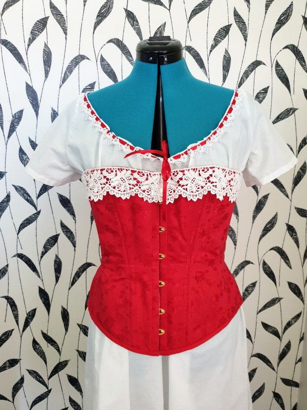 The display corset is a bold move in red but it’s gorgeous, and my idea of making it in red came from the fact that Mum is letting me borrow her mannequin for the show and hers is red.