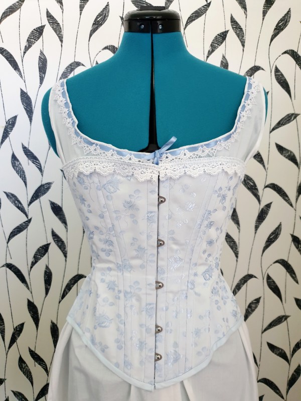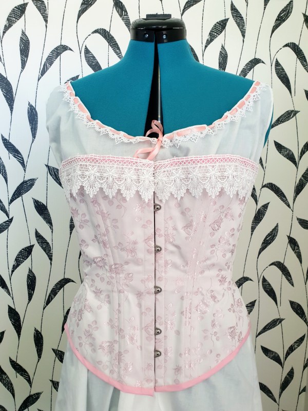 I then had the bright idea of making up some corsets in different sizes to be available for anyone who wanted to wear them in the show. And when the coutil arrived I fell in love with the pink and blue rosebud coutil and couldn’t choose which one I liked best so… I just had to make myself two corsets ☺️