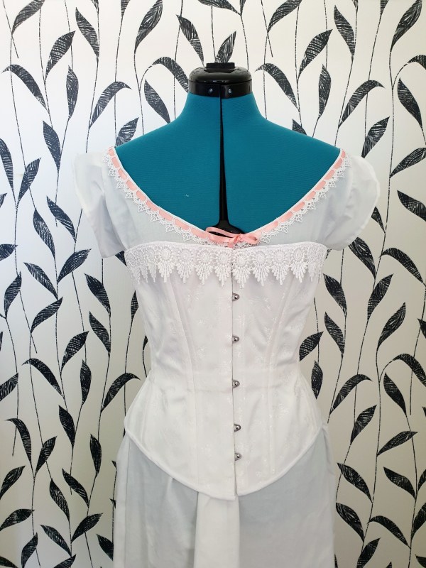 Mum’s is a white broche corset, with spiral steels, and white lace trim.