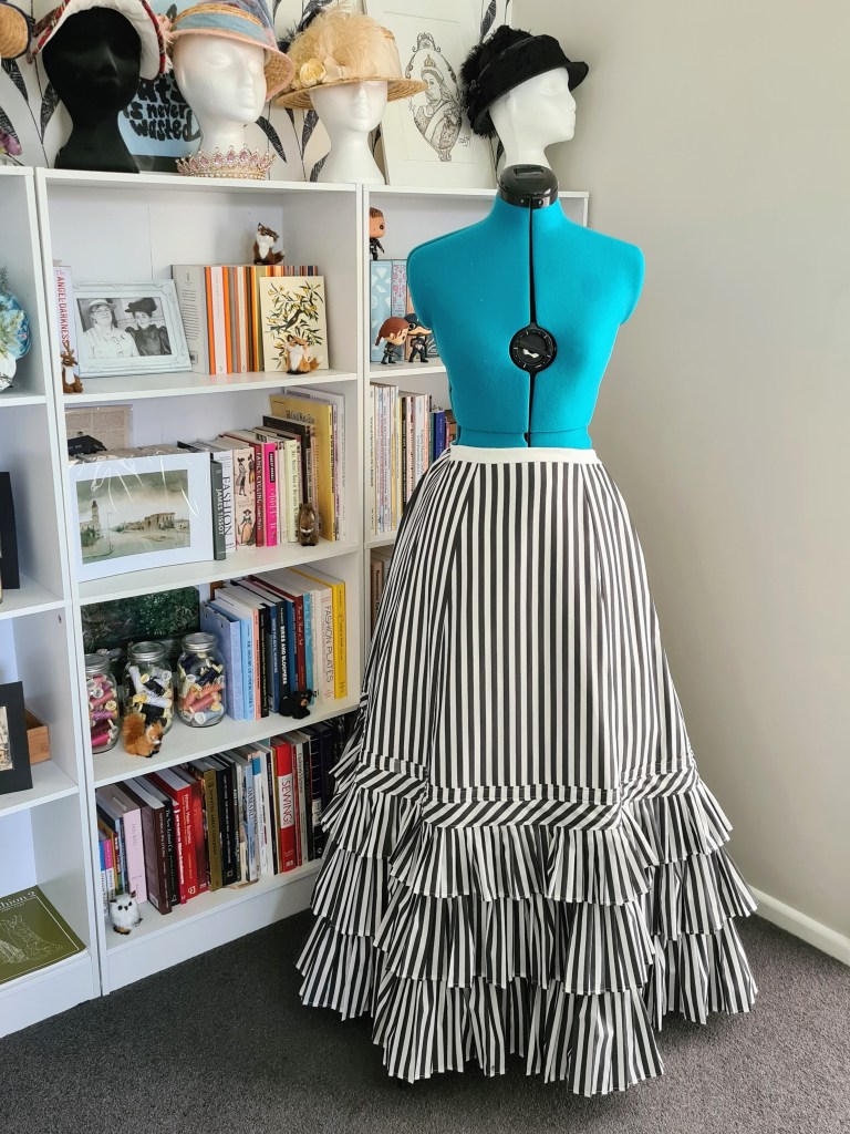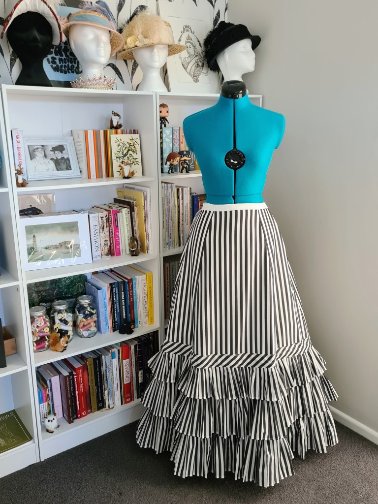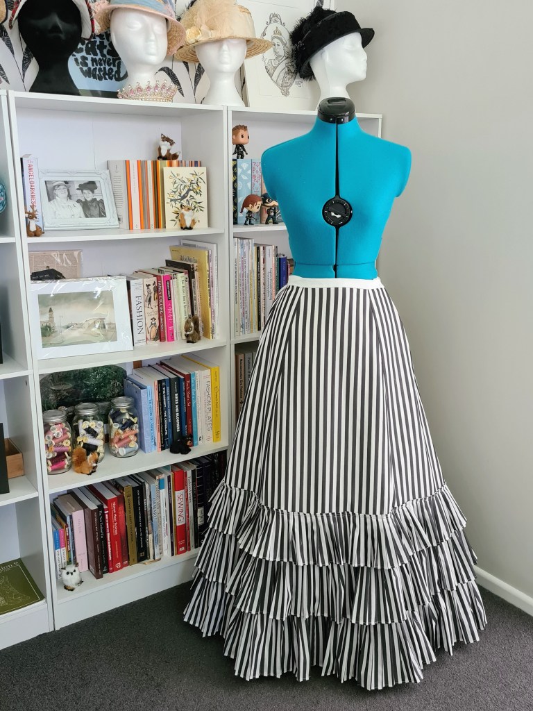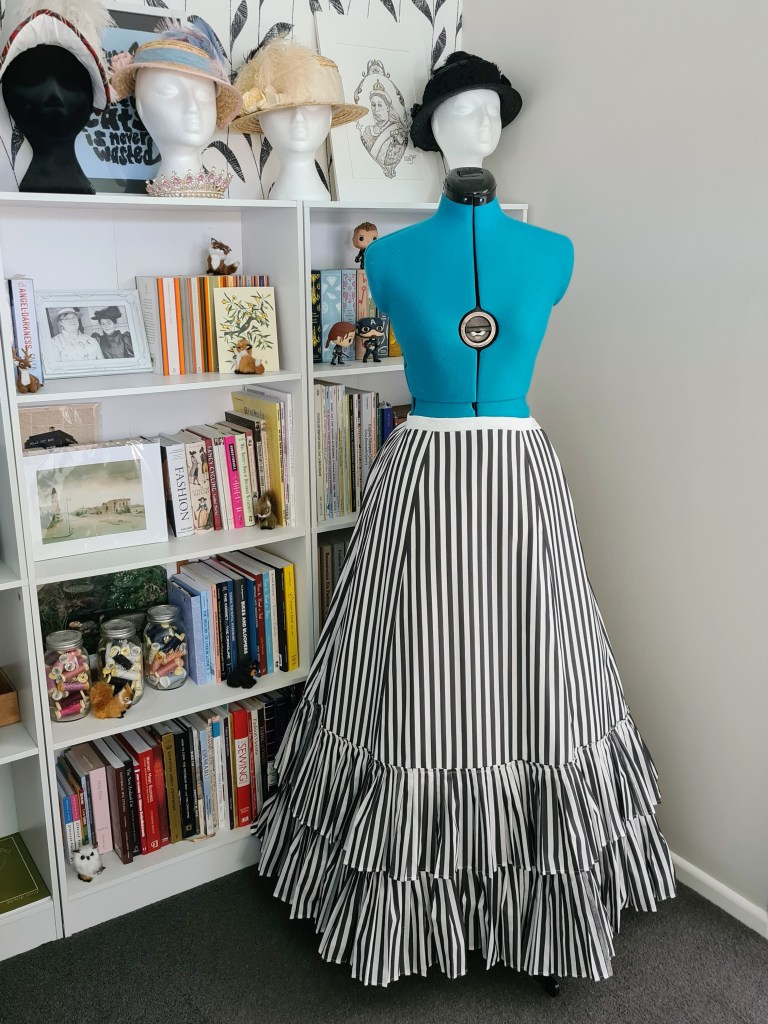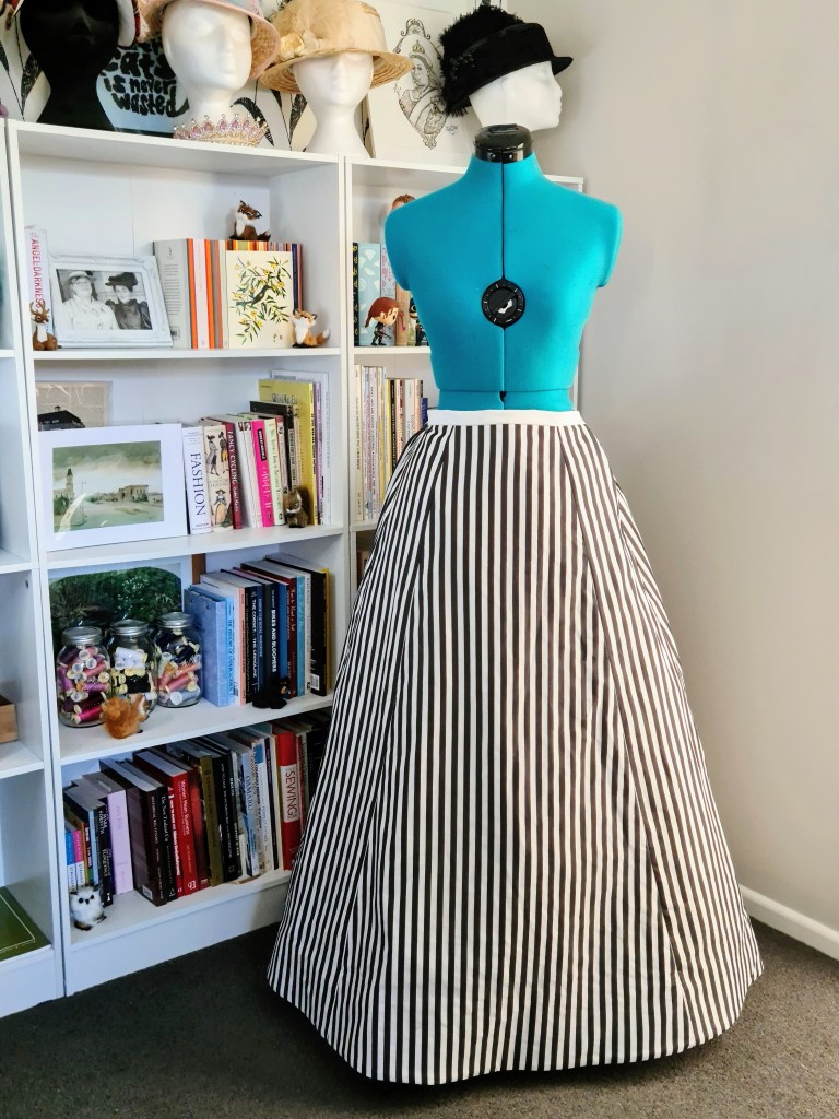 The first part of my Striped Tissot Dress that I made up was the underskirt. This turned out to be a bit more complicated than I expected due to my stubborn perfectionism, and liberal use of the seam ripper as I undid and redid some parts.